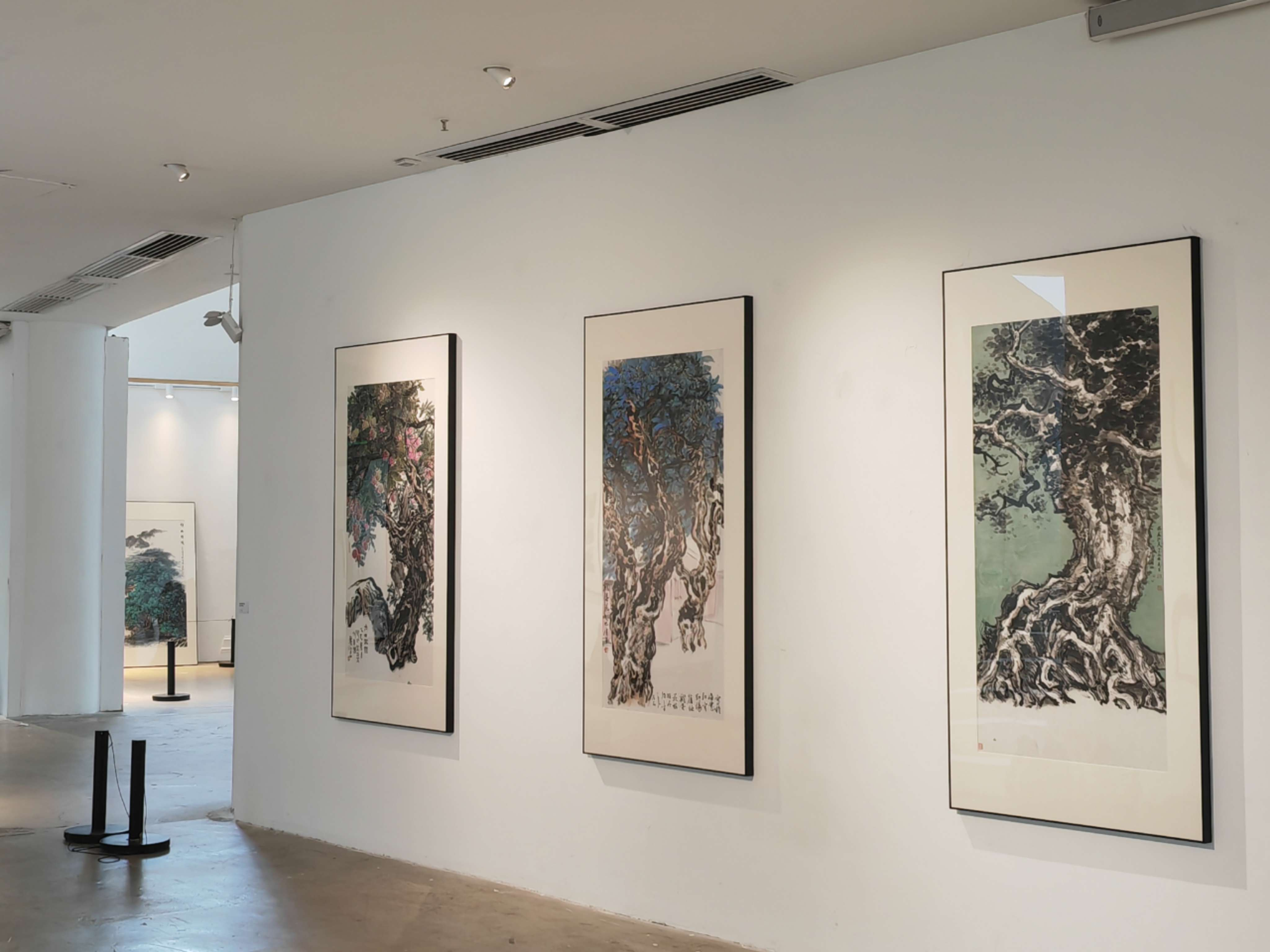 白净展墙上,职责主说念主员正辞谢而精确地把一幅幅已装裱完成的画作吊挂到位。画中,岭南古榕的强盛枝干在宣纸上舒张开来,墨色散漫淋漓。10月13日,广州市越秀区东山湖公园溯.榭映好意思术馆里迎来一批“新客”,60多幅古树字画作品将在两天后隆重亮相,向万千不雅众展示绿好意思广东的古树神韵。