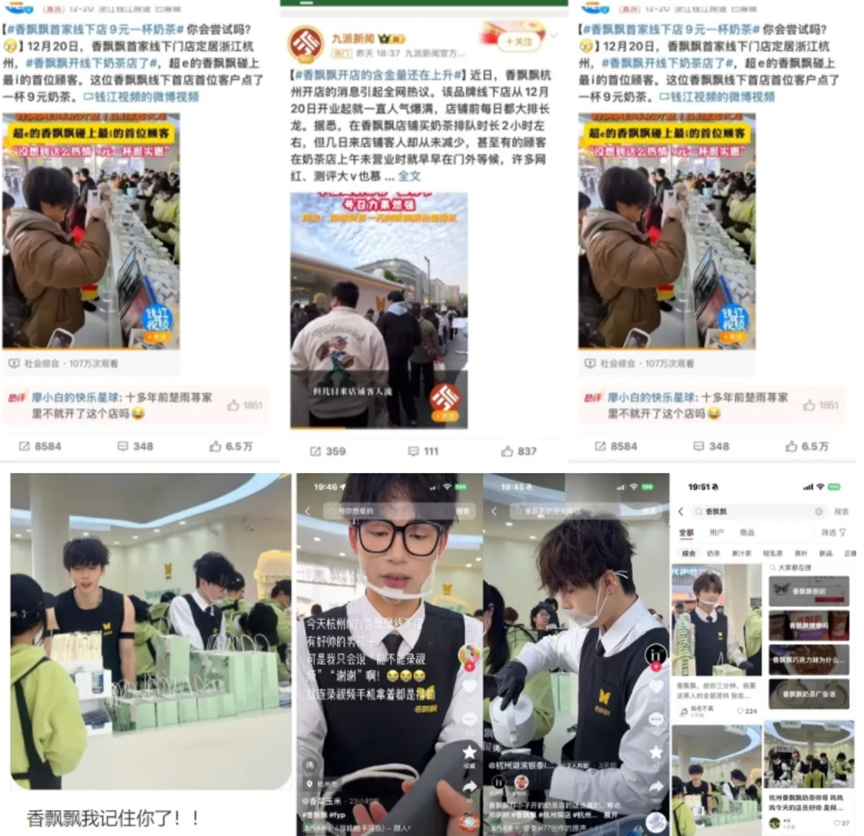 香飘飘奶茶店,不仅火爆各短视频平台,还被各式热点种草,上了热搜,更成为一个打卡圣地。